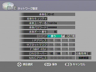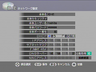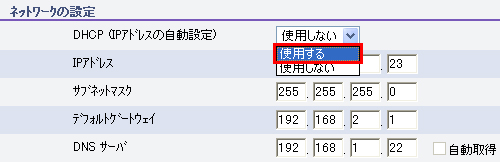 | ★ | 「ネットワークの設定」の「DHCP」を「使用する」にします。 | |