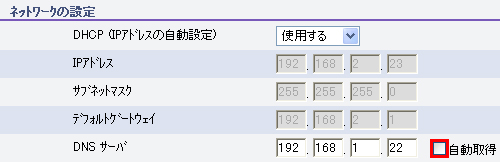 | ★ | 「ネットワークの設定」の「自動取得」をチェックをはずします。 | |
