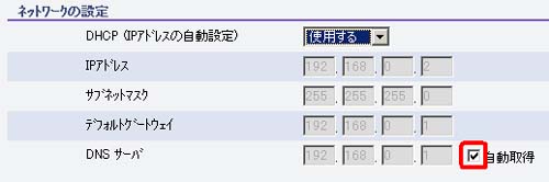 | ★ | 「ネットワークの設定」の「自動取得」をチェックします。 | |