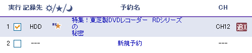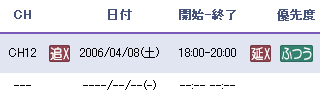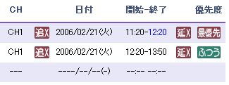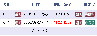 | ※ | 青:終了時刻と開始時刻が同じなどの時。(HDDとDVDの予約混在時には、終了時刻が青文字で表示されない場合があります) | |