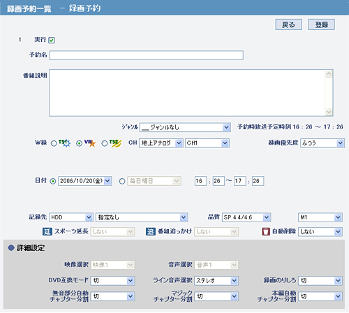 | ★ | 「録画予約一覧 - 録画予約」ページが表示されます。 | ||