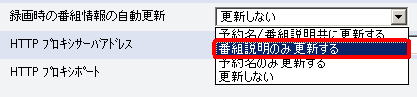 「録画時の番組情報の自動更新」が「更新しない」の場合でも、番組説明が空欄の場合は、番組説明を自動更新します。 |