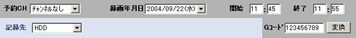 | ★ | ページが更新され、「CH」「録画年月日」「開始」「終了」が自動的に入力されます。 | ||