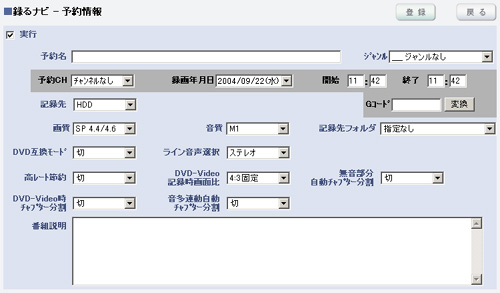 | ★ | 「録るナビ - 予約情報」ページが表示されます。 | ||