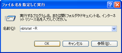 「名前(O)」に「nbtstat -R」と入力して「OK」をクリックします。