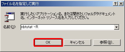 「名前(O)」に「nbtstat -R」と入力して「OK」をクリックします。