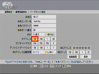 「←↑→↓」ボタンで「イーサネット設定」まで移動して「決定」を押します。